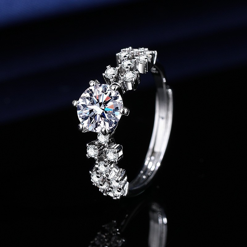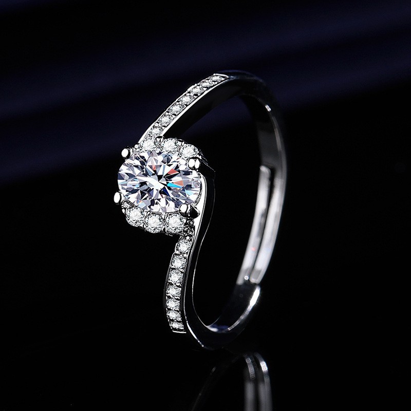 Elevate your love story with the unmatched brilliance of MakerVid™. This exquisite piece features a stunning 1-carat round-cut Moissanite center stone, meticulously surrounded by a shimmering halo of accent stones. Crafted in high-quality 925 Sterling Silver, this ring offers the timeless look of a diamond with superior fire and durability.